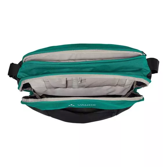 La borsa Vaude Cycle Messenger M è progettata per essere agganciata come una bisaccia al portapacchi quando si torna a casa in bicicletta dal lavoro o ci si incontra con gli amici. Dispone di uno scomparto principale ampio e una tasca speciale per portatile da 133″. Oltre ai numerosi dettagli tecnici, questa borsa a tracolla è dotata del sistema di aggancio QMR 2.0, che si adatta a tubi portapacchi rotondi con diametro di 8-16 mm. È dotata di una copertura impermeabile, in modo che la pioggia non sia un problema. La finitura Eco Finish è al 100% priva di fluorocarburi. L’etichetta Vaude Green Shape identifica che i prodotti sono funzionali ed ecologici e sono realizzati con materiali sostenibili.