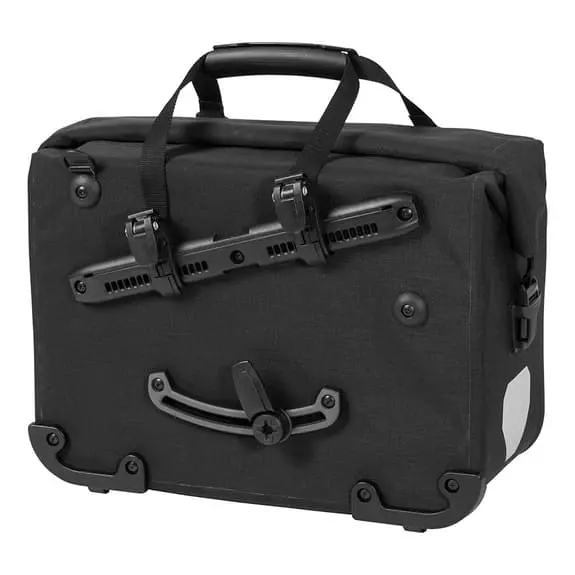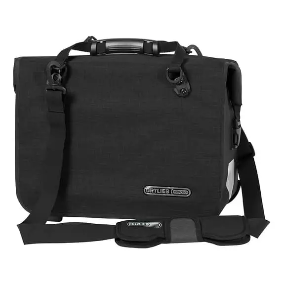 Tracolla Ortlieb Office-Bag 21L e con adattatore Quick-Lock2.1 può essere fissata sulla destra o sulla sinistra del portapacchi e può essere agganciata o rilasciata molto velocemente. Grazie alla tracolla imbottita smontabile, puoi portarla con te quando lasci la bici parcheggiata ed entri in ufficio. Presenta due inserti riflettenti realizzati in materiale Scotchlite da 3M’ che garantiscono una buona visibilità in condizioni di luce sfavorevoli e al buio. Presenta un sistema di chiusura a rotolo e il suo interno è ben strutturato come l’esterno. Offre uno scomparto imbottito per notebook fino a 15.4 pollici, spazio sufficiente per due cartelle DIN A4, penne, cellulare e altro ancora. Questa tracolla è realizzata in poliestere rivestito con PU (poliuretano) e senza PVC (cloruro di polivinile), ottenendo un materiale robusto e impermeabile in tela che offre una grande qualità, una lunghissima durata e rispetta l’ambiente.