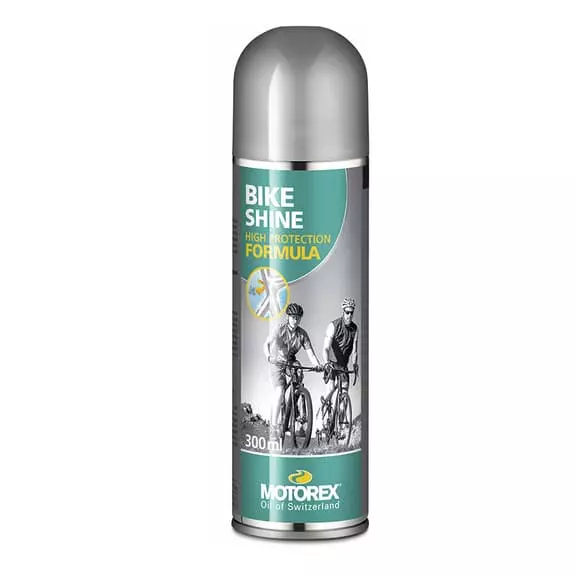 Brillantante Motorex Bike Shine Spray da 300 ml che recupera i colori e offre una brillantezza intensa. Motorex Bike Shine Spray protegge, conserva ed è idrorepellente. Le sue proprietà antistatiche respingono la polvere, pertanto è ideale per conservare le biciclette che si usano con poca frequenza.