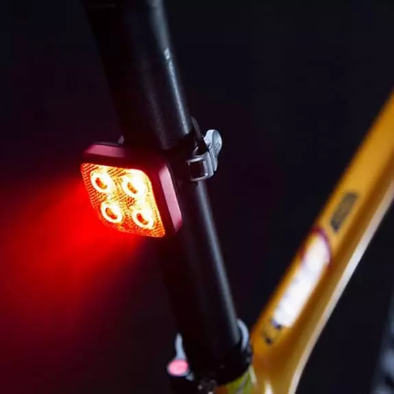 Faretto posteriore Knog Blinder Mob The Face da 44 lumen con 4 LED montati in superficie e 5 modalità di accensione: luce fissa ad alta intensità, fissa a bassa intensità, stroboscopica, flash ed eco-flash. Si accende premendo il tasto di accensione per circa 0,75 secondi così da evitare accensioni indesiderate. Pulsazioni più brevi a seconda della modalità di accensione. La luce si spegne tenendo premuto il tasto per circa 0,5 secondi. Luce visibile a 1200 metri circa di distanza. Indicatore di carica. Livello di protezione IP67. Cinghie sostituibili per fissare il faretto senza bisogno di attrezzi.