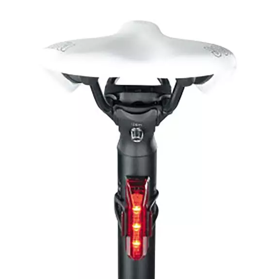 Il faro posteriore Topeak Redlite Aero è sottile e aerodinamico, si adatta perfettamente al reggisella. Il cinturino in gomma permette il montaggio e lo smontaggio senza attrezzi e multiple posizioni di montaggi.