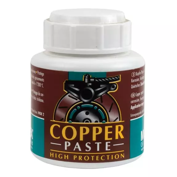Grasso Motorex Copper Paste da 100 g a base di rame che previene il grip della filettatura di perni e dadi. Protegge contro la corrosione.
