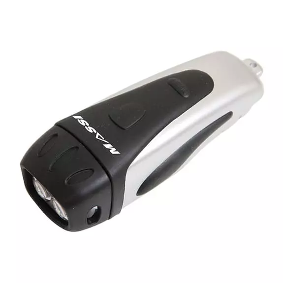 Luce anteriore Massi Fornax LED con fascia per il polso. Luce di alta gamma, con 3 LED ultra luminosi bianchi. Due funzioni e braccialetto da portare al polso. Resistente all’acqua.