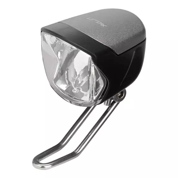 Luce anteriore XLC Luce LED per biciclette elettriche E-Bikes 6-48V con supporto in acciaio inox, carcassa di plastica e riflettore estraibile con coperchietto di alluminio e un’intensità luminosa da 70Lux.