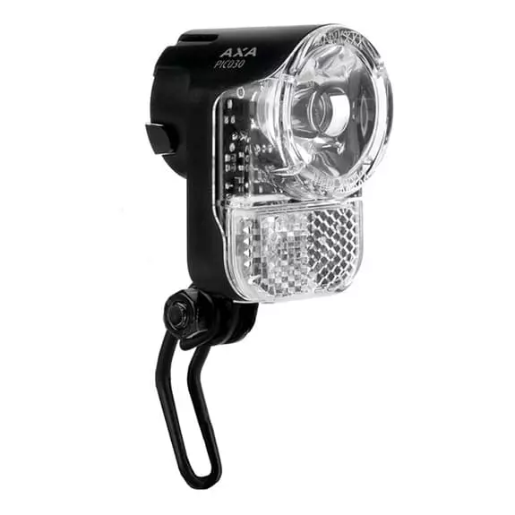 La luce Axa Pico 30 T è una luce anteriore per biciclette con generatore dinamo, supporto, cavo e con una potenza luminosa fino a 30 Lux.