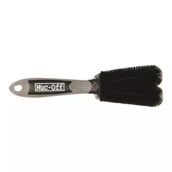 La spazzola Muc-Off Brush 2 Prong ha due prolungamenti che la rendono ideale per raggiungere la sporcizia tra i raggi, i dischi, ammortizzatori, guarniture, collegamenti e pedali. Il suo design unico comprende setole di nylon più durature, un manico resistente agli impatti per una massima presa in condizioni di umidità. La posizione delle teste delle spazzole può essere modificata in modo da raggiungere anche le zone più strette.
