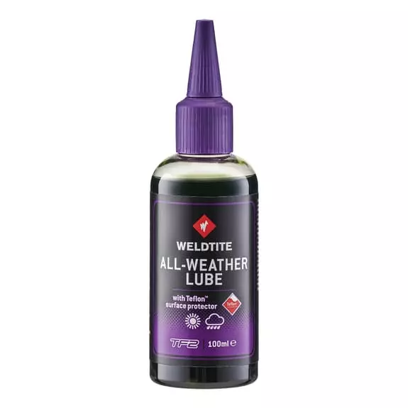 L’olio lubrificante Weldtite Teflon TF2 All Weather è resistente alla sporcizia e all’acqua ed è adatto a tutte le condizioni climatiche. Dopo aver pulito la catena, applicare l’olio e lasciare asciugare 5 minuti. La protezione della pellicola di Teflon e la combinazione di olio sintetico penetra in tutte le parti della catena.