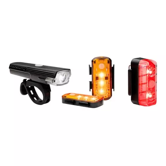 Il set di luci Blackburn Luminate 360 Light Set 2020 è composto da una luce anteriore, una luce posteriore e luci laterali.