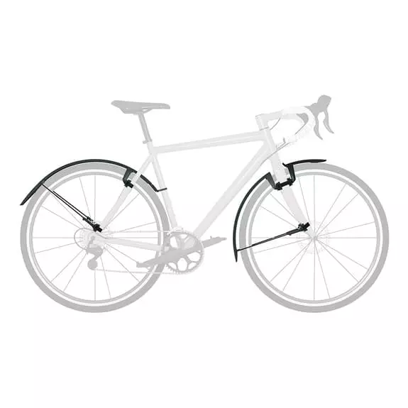 Nella parte anteriore, la protezione è migliorata con un alettone anteriore di doppia altezza, che devia l’acqua e il fango verso la ruota sottostante, lontano dal viso del ciclista. Il parafanghi posteriore utilizza un’estensione telescopica per una maggiore copertura vicino al reggisella, e tutto rimane al suo posto grazie al sistema di sostegno in gomma che si adatta a molti tipi di telai, anche i ribassi integrati per cavi del freno o gli ingranaggi.