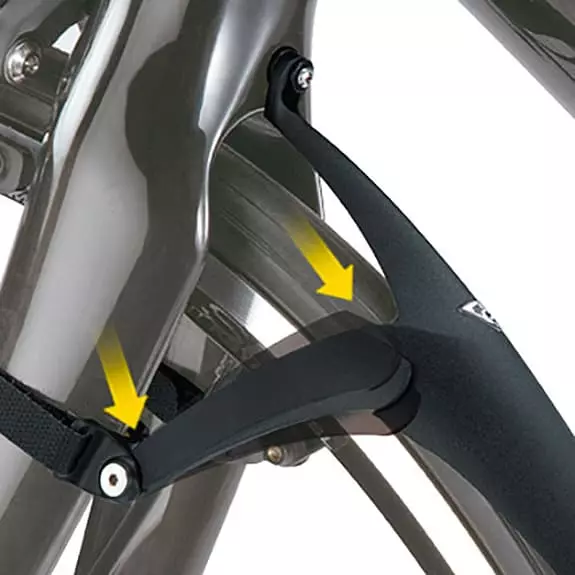 Il set di parafanghi Topeak Defender RC1/RC11 è pensato per le biciclette da corsa con ruote da 28 pollici di diametro. È realizzato in plastica resistente e flessibile che offre una grande leggerezza e resistenza agli impatti. Inoltre, ha un sistema di montaggio facile che non richiede l’uso di attrezzi. Il parafango anteriore si monta con un semplice perno a sgancio rapido, mentre quello posteriore si adatta al reggisella attraverso il comodo e rapido sistema QR che si adatta a tutte le misure.
