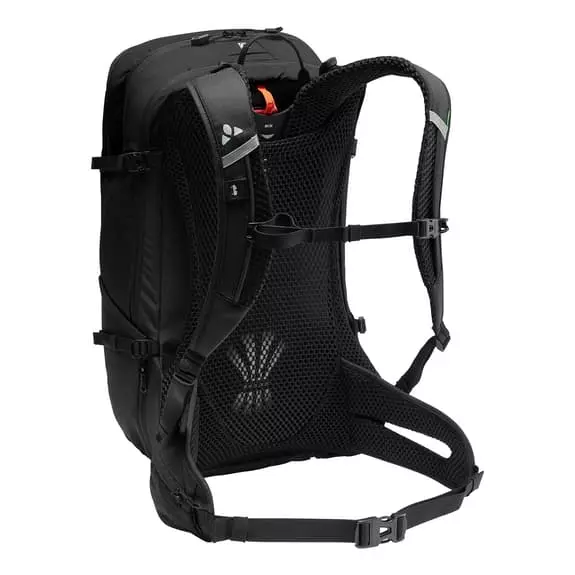 Lo zaino Vaude Bike Alpin, con una capacità totale di 30+5 litri, consente di ampliare il volume per escursioni in MTB o escursioni di più giorni. La disposizione intelligente dei suoi scomparti, tra cui uno adattato all’uso di borracce supplementari, ti permetterà di organizzare l’attrezzatura in modo efficiente e semplice. L’area di contatto posteriore è realizzata in tessuto a rete per una ventilazione costante durante la pedalata. I suoi numerosi dettagli tecnici, come le tasche laterali in rete o la possibilità di espandere la capacità di 5 litri in più, lo rendono una scelta ideale per i percorsi più impegnativi e lunghi. Lo zaino è compatibile con l’uso di sistemi di idratazione.La finitura Eco Finish è al 100% priva di fluorocarburi. L’etichetta Vaude Green Shape identifica che i prodotti sono funzionali ed ecologici e sono realizzati con materiali sostenibili.