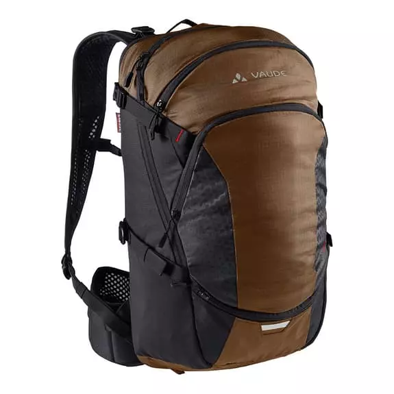 Lo zaino Vaude Moab Pro II, con una capacità di 22 litri, è progettato per la mountain bike. Oltre alla sua grande capacità, questo zaino presenta un paraschiena e un sistema di sospensione ergonomico per ammortizzare gli impatti che si verificano durante la pratica sportiva su piste forestali e sentieri. L’organizer situato nello scomparto principale permette di mantenere l’ordine tra gli oggetti, impedendo loro di muoversi in modo incontrollato durante la pedalata. È realizzato tramite il processo Eco Finish, libero da fluorocarbonati, privo di PFC e idrorepellente. L’etichetta Vaude Green Shape è sinonimo di articoli ecologici e funzionali realizzati con materiali eco sostenibili.