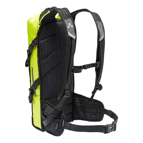 Lo zaino Vaude Trailpack II, con 8 litri di volume, è impermeabile e molto versatile, con una gamma illimitata di usi. È buono sia per il bikepacking che per il gravel, ed è perfetto come zaino per tutti i giorni. Lo scomparto principale è impermeabile al 100%, saldato e ha una chiusura roll-top. Si attacca nella parte inferiore della schiena e ai lati in modo che l’attrezzatura aggiuntiva o uno zaino idrico da 2L possano essere conservati nello spazio in alto. Dietro la patta anteriore, con due cinghie di compressione, c’è spazio per un casco, un gilet o altre attrezzature. Gli oggetti di valore possono essere conservati in modo sicuro nella piccola tasca con zip sul retro. Le stampe riflettenti sulla parte anteriore e sui lati dello zaino aumentano la visibilità in condizioni di scarsa luminosità. Sia lo scomparto principale impermeabile che la patta frontale sono realizzati con materiali riciclati al 100%. Il materiale riciclato del Trailpack II, certificato bluesign, è lavorato con il trattamento ecologico e idrorepellente Eco Finish senza l’uso di fluorocarburi (PFC).