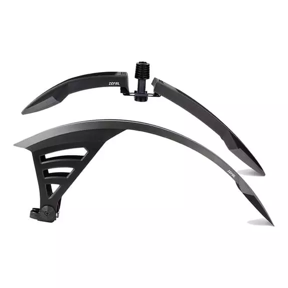 Il set di parafanghi Zéfal Deflector RS75-FM60 è discreto ed estremamente efficace grazie al montaggio vicino alla ruota. È adatto anche per biciclette a doppia sospensione grazie al montaggio della forcella oscillante.